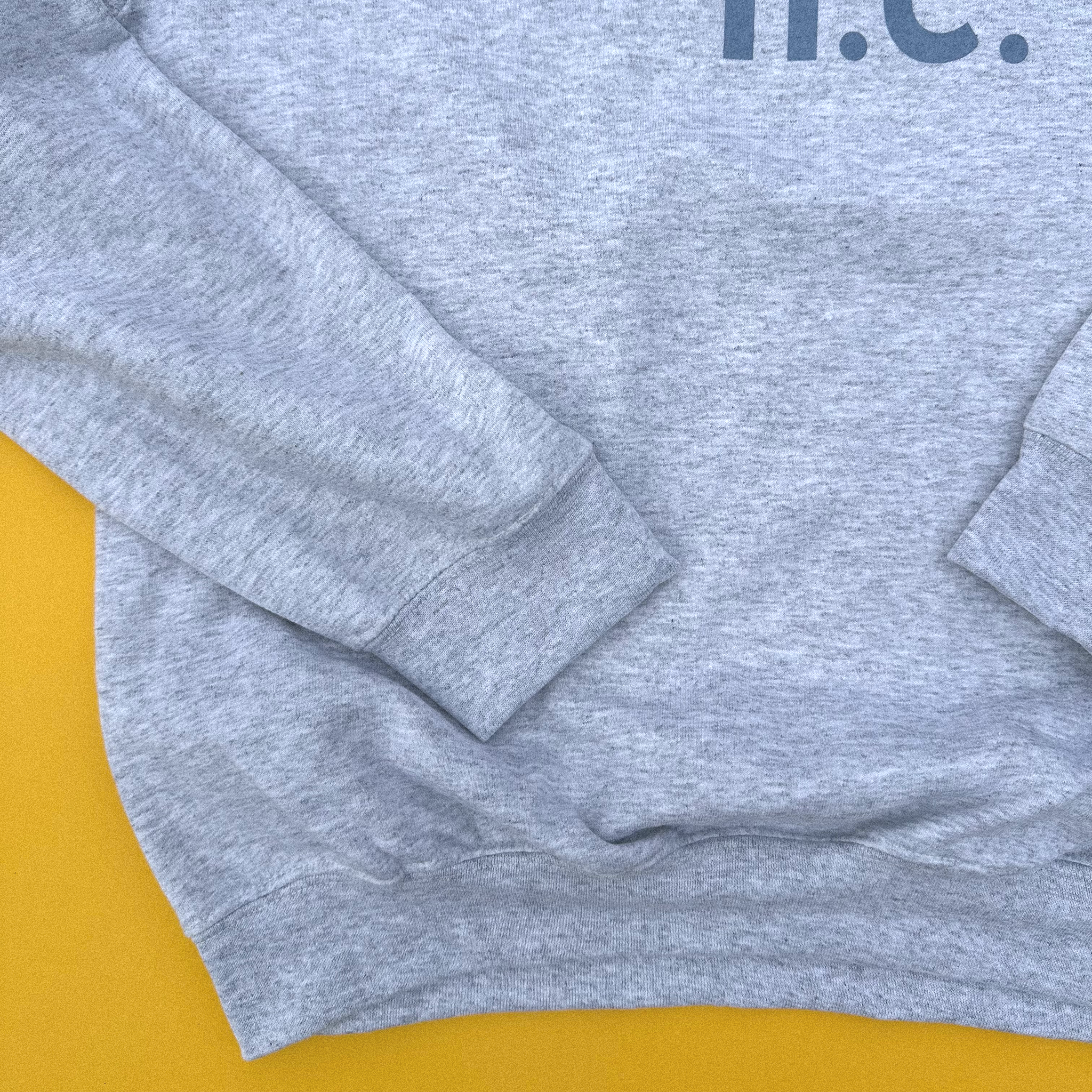 Gildan Heavy Blend. Ash with blue screen print.