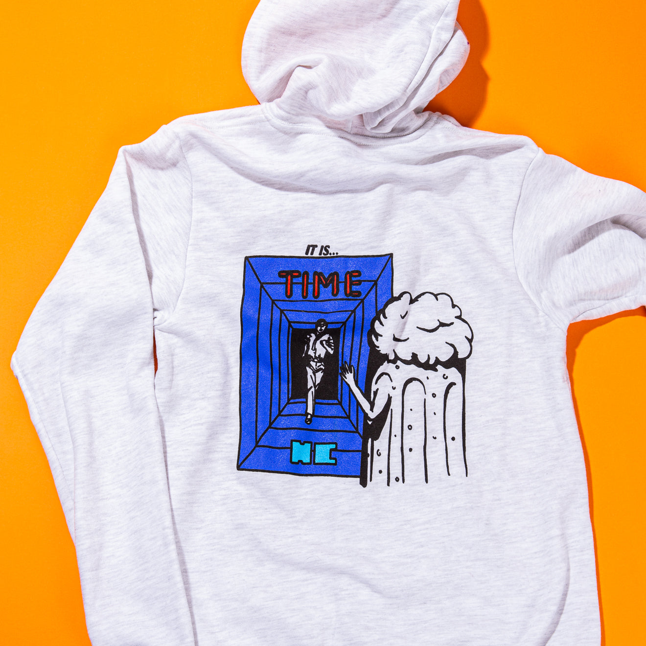 52% Airlume combed and ring-spun cotton 48% poly fleece Full Zip Hoodie in Ash. it is time HC on front. With a retrowave print on back that longs for love.